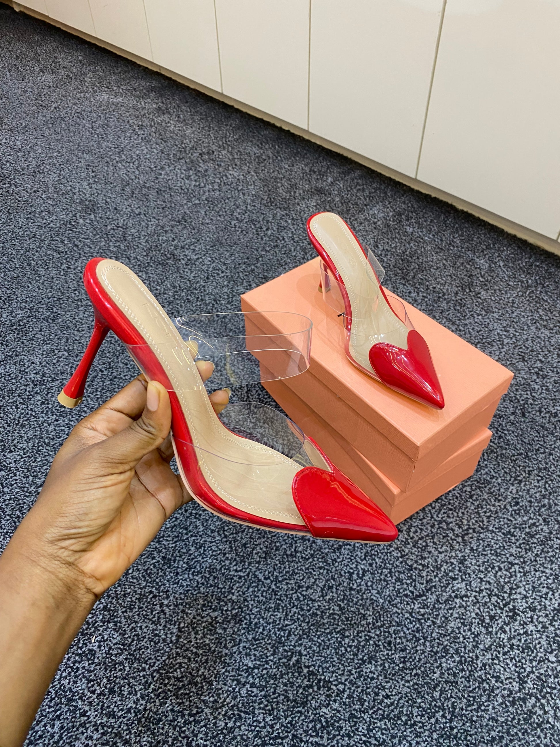 Turn heads effortlessly with these ELAN patent clear strap pointed-toe mules from Kora Shoes, designed for bold, fashion-forward women who love statement heels. Featuring a glossy red patent toe cap and heel with a transparent PVC upper, this design creates a sleek “barely-there” illusion that elongates the legs and elevates any outfit. Perfect for parties, date nights, weddings, and special occasions, these heels bring runway inspired style to your wardrobe.
