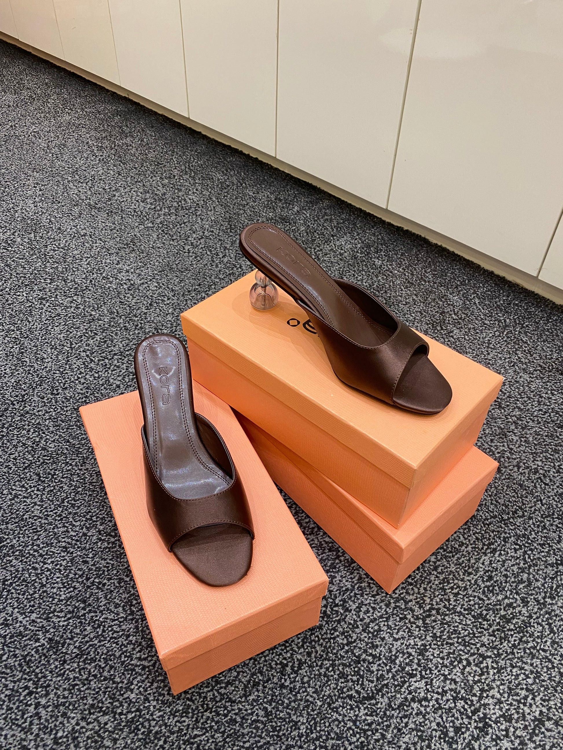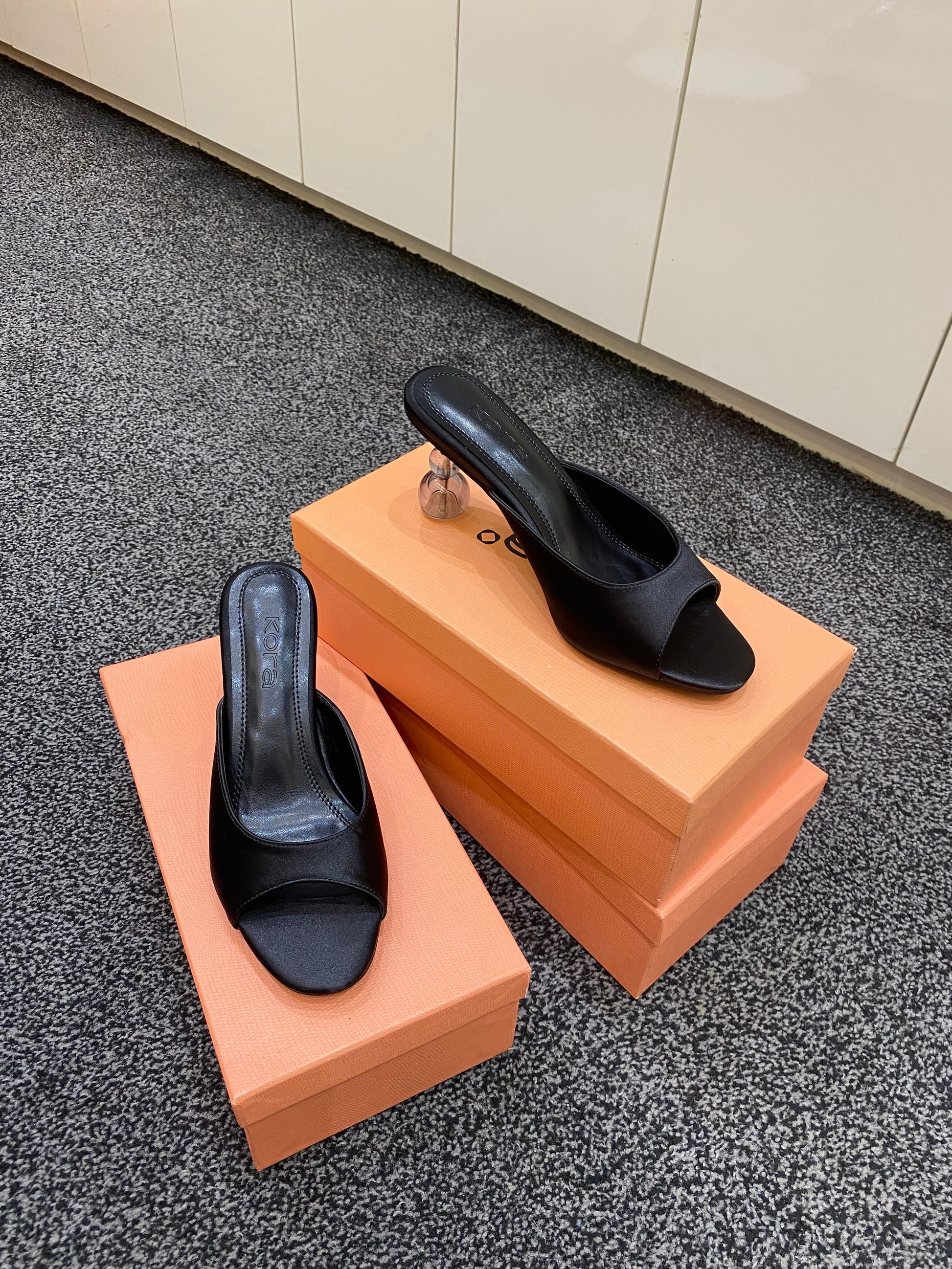 Step into bold elegance with the Gaze satin heels by kora shoes, designed for women who love effortless glamour and standout style. Featuring a smooth satin upper, sleek open-toe design, and a unique sculpted glass heel, these slip-on sandals bring a modern luxury finish to both day and evening looks.