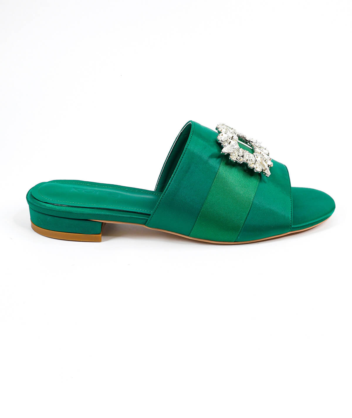 A sleek, modern color palette enhances their refined silhouette, while sparkling crystal embellishments add a glamorous touch that instantly elevates any outfit. These slides are a chic choice whether you're heading out for brunch, attending a garden party, or adding flair to a relaxed evening look.