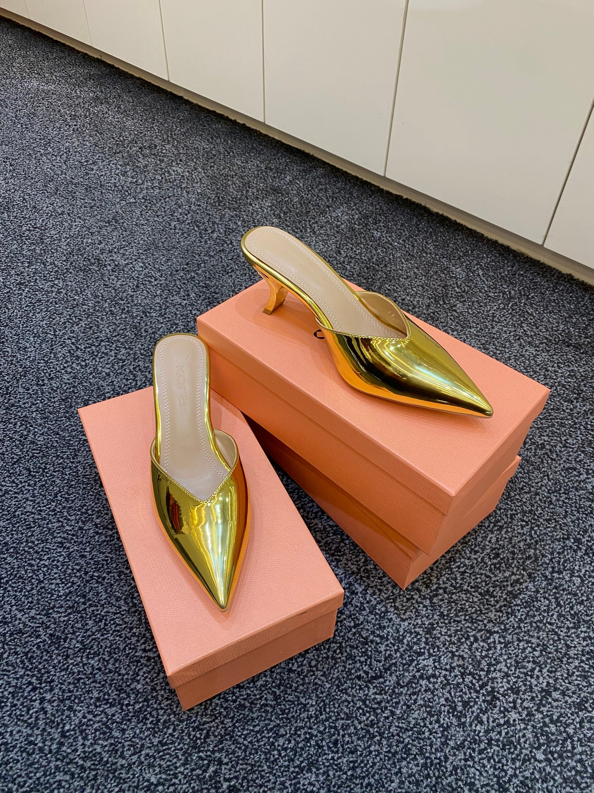 Step into the spotlight with Playa Metallic Pointed-Toe Mules from Kora Shoes. Featuring a stunning mirror-finish and a modern, sculptural kitten heel, these shoes are the perfect blend of high-fashion glamour and all-day comfort. Whether you're dressing up a pair of distressed denim or finishing off a sleek evening look, these mules are your new go-to for effortless "wow" factor.